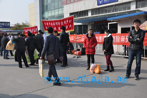 2014年1月26日是第61届“世界防治麻风病日”暨第27届“中国麻风节”,今年的主题是:“加速行动,消除麻风危害”。市疾控中心针对我市外出务工人员返乡高峰时间,组织地方病、健康教育科相关业务人员在安康市火车站开展麻风病防治宣传。