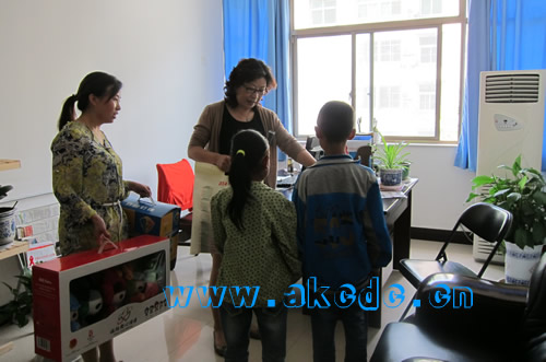 “六一”儿童节是每个孩子的节日,为了让艾滋病儿童同样享受到节日的温暖、感受到党和政府的关怀,2014年5月29日, 在“六一”儿童节来临之际,安康市疾控中心副主任周玲与艾滋病防治科工作人员一道看望慰问了我市的艾滋病儿童。