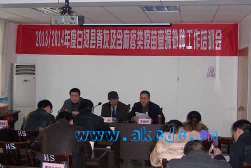 为维持我县无脊灰状态,完成消除麻疹目标任务,根据安康市卫生局《关于印发〈2013年度安康市脊髓灰质炎疫苗强化免疫及含麻疹类疫苗查漏补种活动实施方案〉的通知》要求,我县将于2014年1月开展2013/2014年度脊髓灰质炎疫苗及含麻疹类疫苗查漏补种工作,为确保我县此次补种活动的顺利进行, 2014年1月2日,白河县在县疾控中心召开脊髓灰质炎、含麻疹类疫苗查漏补种工作暨技术培训会,全县各镇卫生院主管公共卫生院长、防疫专干等共计30余人参加了会议。